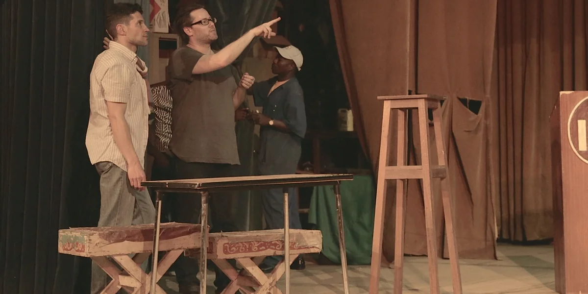 Regisseur Milo Rau bereitet vor Ort sein Projekt „Das Kongo-Tribunal“ vor. Begegnung mit dem Gouverneur der Provinz Südkivu.