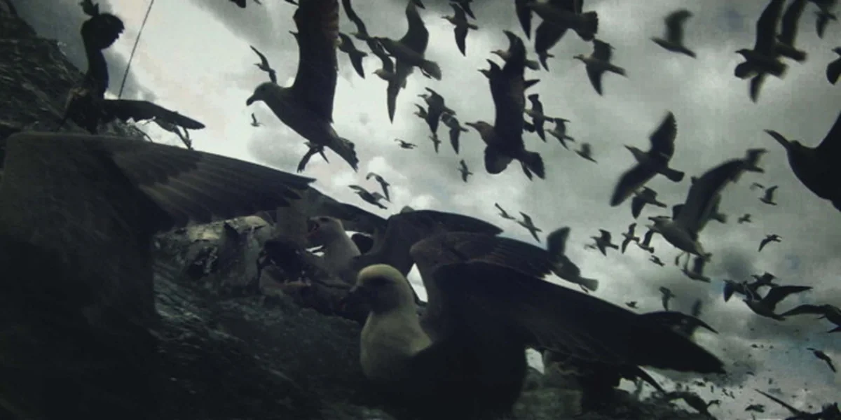 Die beiden Anthropologen und Filmemacher Verena Paravel und Lucien Castaing-Taylor haben für „Leviathan“ sechs Wochen auf einem Fischkutter auf dem Atlantik verbracht. Eine Reihe von waghalsigen Perspektiven, die den Zuschauer unvermittelt mit ungeschönten Bildern konfrontieren, charakterisiert diesen Film. Die Kameras hängen gleich Bojen im Meer und zeichnen die Blutfontänen auf, die aus dem Schiff spritzen. An Bord dominiert körperliche Schwerstarbeit – ein Schlachten, das an Georges Franjus legendären „Le sang des bêtes“ (1949) denken lässt.