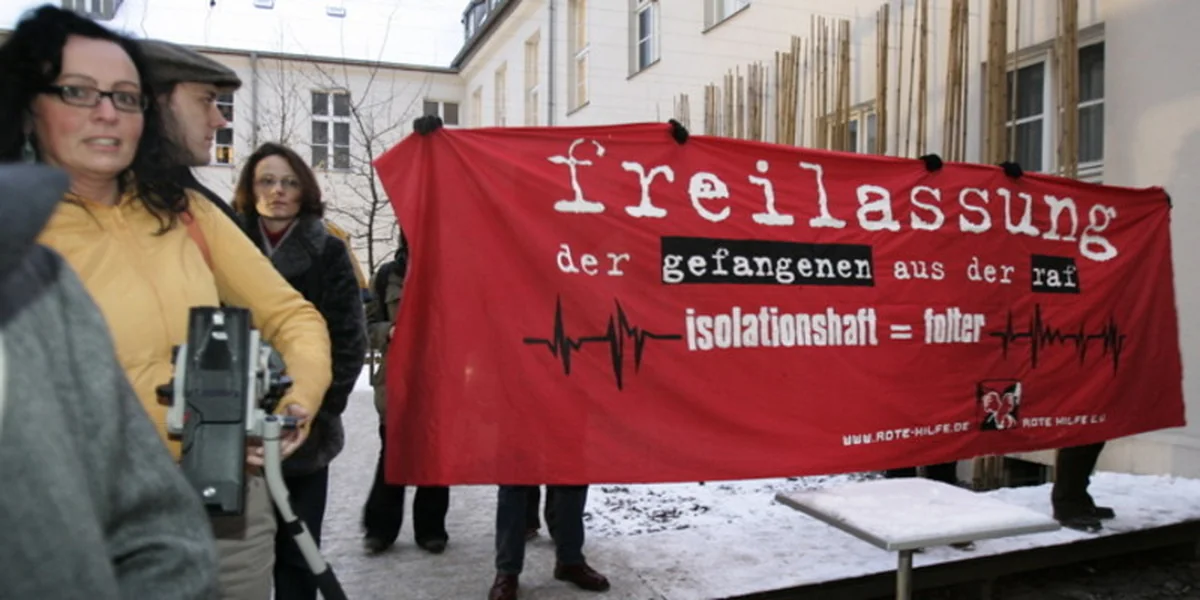 Eines der wenigen Fotos von Aktionen der Roten Hilfe: Transparent zur Ausstellung "Die RAF" 2005. Bild: AP