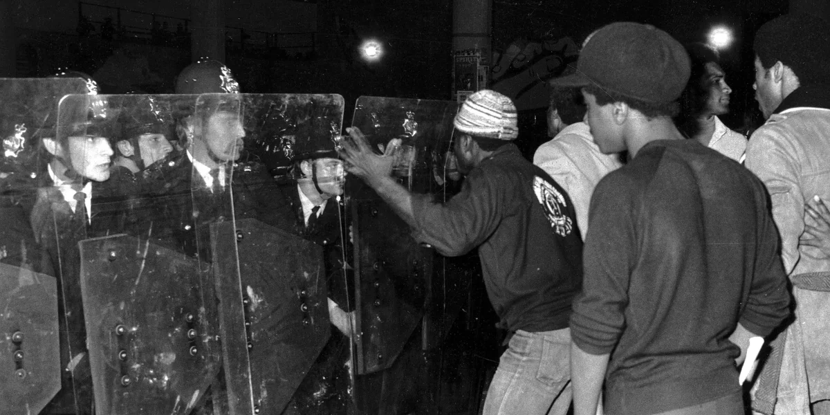 Ende der 1970er und Anfang der 1980er Jahre überzog eine Reihe an Aufständen britische Städte. Angeführt wurden sie von radikalisierten Jugendlichen aus asiatischen, afro-karibischen und weißen Familien. Ursächlich für die Unruhen waren rassistische Polizeigewalt, der Terror durch die faschistische National Front und die durch den ökonomischen Abschwung produzierte Arbeits- und Perspektivlosigkeit. Gefordert wurde vor allem das Ende der Ungleichbehandlung und Polizeigewalt.
