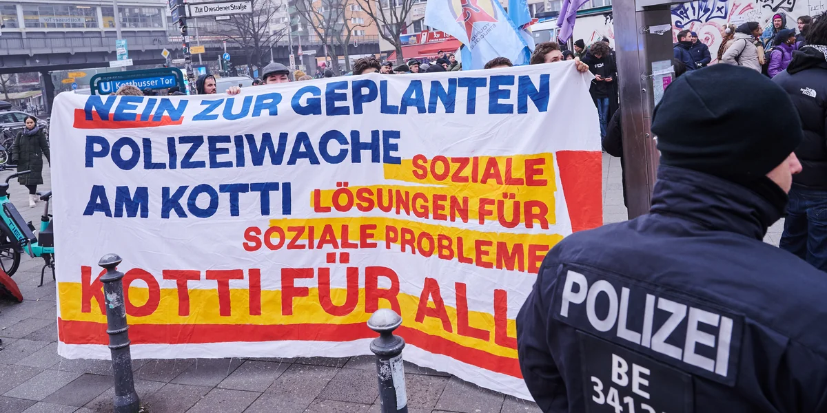Das Bündnis „Kotti für alle“ protestierte am Mittwoch gegen die Eröffnung der neuen Polizeiwache. Die erhöhe für viele das Unsicherheitsgefühl.