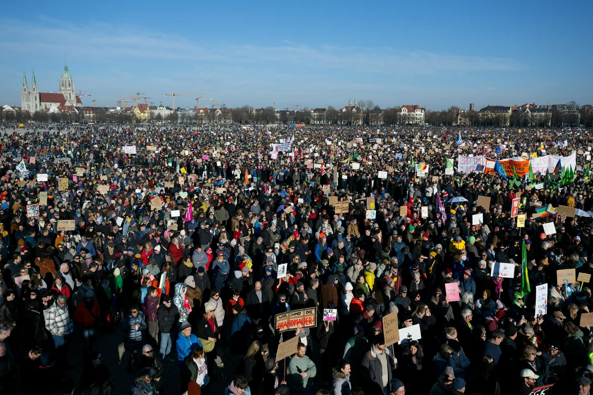 Demonstrationen von Rostock bis München: Die Sorge vor einem Rechtsruck treibt erneut in vielen deutschen Städten Menschen auf die Straßen. Allein in München sind es mehr als 250.000.