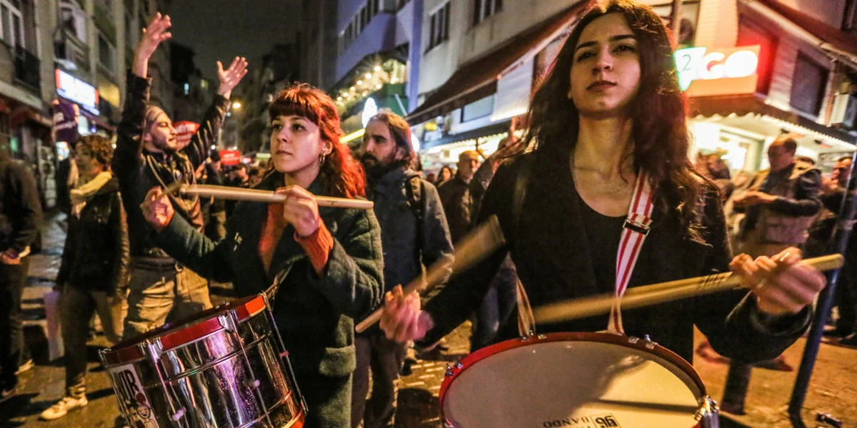 Die in Istanbul, Ankara und Izmir begonnenen Proteste haben sich inzwischen auf das gesamte Land ausgebreitet. Auch wenn die größte Oppositionspartei CHP bereits verkündet hat, dass sie aufgrund ihres „parlamentarischen Selbstverständnisses“ die Demonstrierenden nicht unterstützen wird, gehen in Istanbul jeden Abend um 19.30 Uhr Menschen auf die Straße. Sie marschieren durch Nebengassen ihren Weg auf die großen Plätze und werden dabei von den Anwohner*innen akustisch mit Applaus und dem Lärm von Töpfen und Bratpfannen unterstützt.