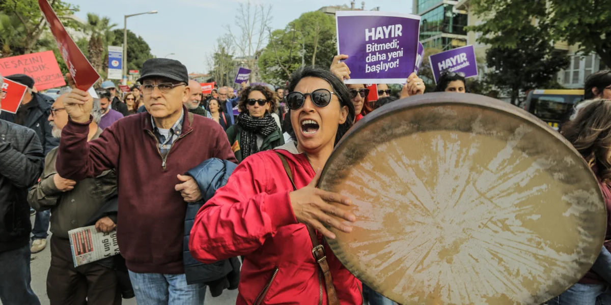 Auch wenn das Referendumsergebnis für die Regierung klar ist, gehen immer noch Tausende von Menschen täglich auf die Straße und schreien: „Nein, wir akzeptieren das Ergebnis nicht!“ Die Kurd*innen, deren Städte zerstört wurden, sagen „Nein“ zum Krieg, die Laizist*innen sagen „Nein“ zur Scharia, die von ihrer Partei ausgeschlossenen Rechtsextremen sagen „Nein“ zum Verrat, die Arbeitslosen sagen „Nein“ zur Korruption, die Frauen sagen „Nein“ zur patriarchalen Gewalt, die LGBT-Community sagt „Nein“ zu Homophobie. Denn es geht nicht nur um einen einfachen Wahlbetrug. Es geht, so wie schon bei den Gezi-Protesten, um sehr viel mehr.