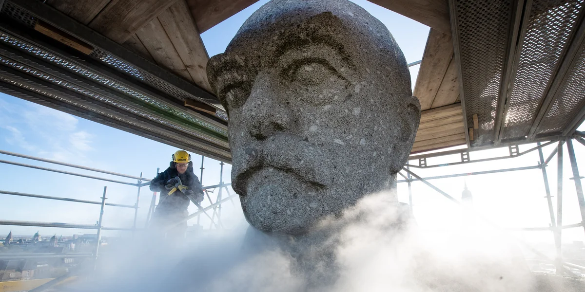 Das Bismarck-Denkmal ragt über dem Hamburger Hafen in den Himmel. Derzeit wird es saniert – umso lauter erklingt die Kritik am umstrittenen Kanzler.