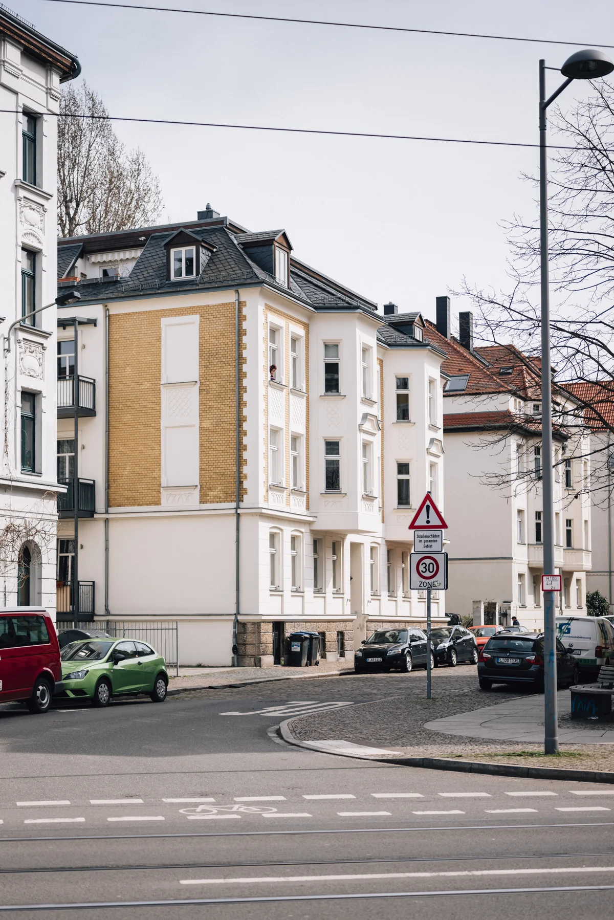 Draußen: Das Gründerzeithaus, in das Harald und Alexandra mit ihren beiden Kleinkindern vor zwei Jahren gezogen sind, steht an einer Straßenkreuzung. Es herrscht Leere an dieser Ecke, nur der Wind streicht um die Mauern. „Schleußig ist ein Familienviertel in Leipzig“, sagt Harald Köpping Athanasopoulos.