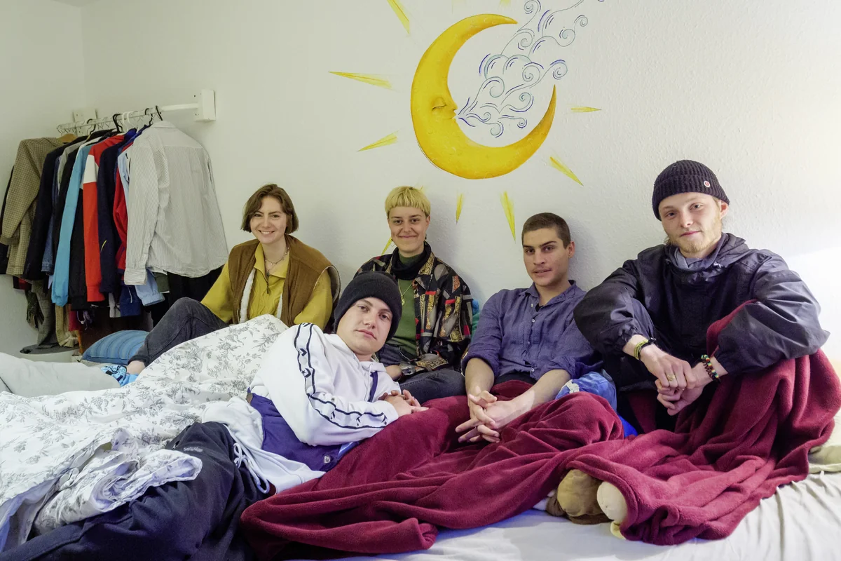 Ausprobieren: „Eigentlich ist es gar nicht so wild, was wir hier tun, einen krassen Unterschied gibt es nicht zu einer WG mit Wohnzimmer. Man muss es halt einfach ausprobieren“, sagt David. Und Alina: „Wenn ich neue Leute kennenlerne, bin ich immer gespannt auf die Reaktionen. Meistens heißt es dann: Finde ich cool, aber könnte ich mir nicht vorstellen. Die Fragen sind dann immer ähnlich: Was ist mit Sex, Masturbation, Privatsphäre?“