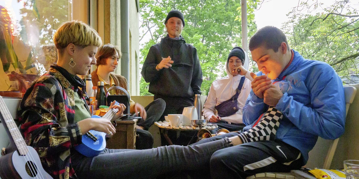 Fünf junge Leute wohnen in Frankfurt zusammen in einer Wohngemeinschaft. Keine*r hat ein eigenes Zimmer – einige nennen es „Wahlfamilie“.
