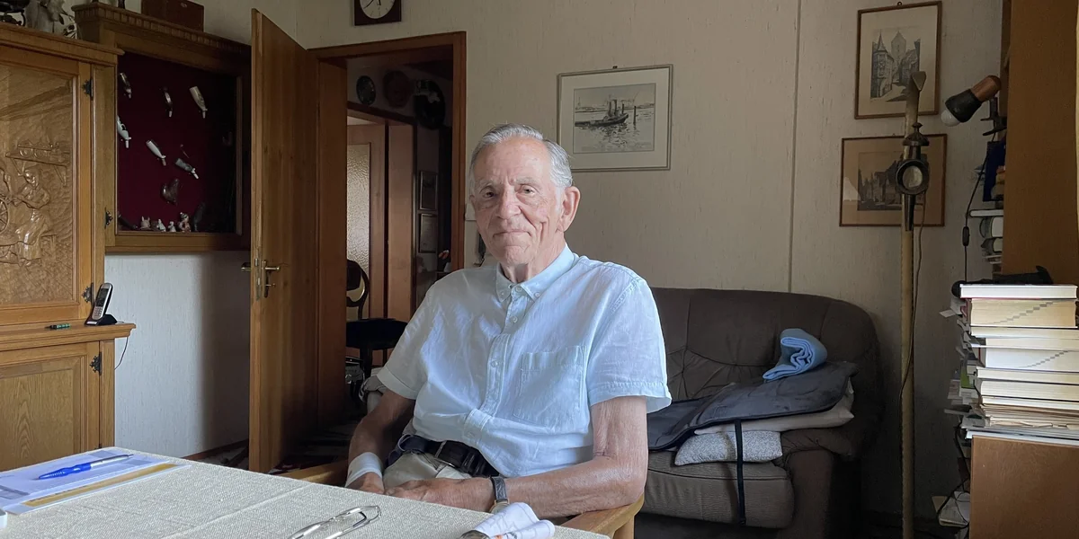 Drinnen: Gerd Wolf zeigt jedes Zimmer in seinem Haus. Stolz ist er auf seine Sammlung alter Röhrenradios, die im Arbeitsraum steht. Überhaupt sammelt er gerne. Münzen, Modellautos, Bücher. In seinem Esszimmer hängt die Pfeifensammlung. Dabei raucht er gar nicht. Auch auf die vielen Kästen mit Dias und auf seine Regale voller Fotoalben deutet er. Denn mit 93 Jahren ist alles Erinnerung.