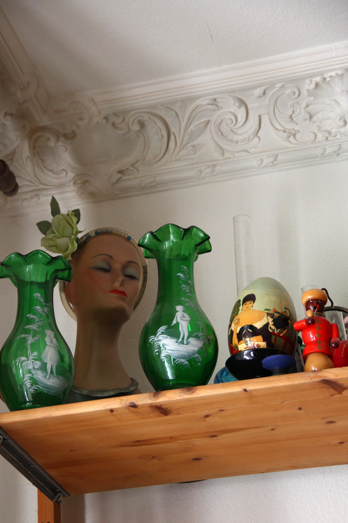 Drinnen: Es ist nicht einfach nur eine Drei-Zimmer-Altbauwohnung mit vor Jahrzehnten abgeschliffenen Dielen, zwei Zimmern mit Blick auf die aufgehende Sonne und einem Balkon vor der Küche, auf den die milde Abendsonne fällt. Es ist auch mehr als nur eine Ansammlung alter Vertikos, Schränke oder Tische, kontrastiert durch ein Hochbett aus groben Balken, das aus Westberliner WG-Zeiten stammen muss. Die Wohnung ist ein Museum.