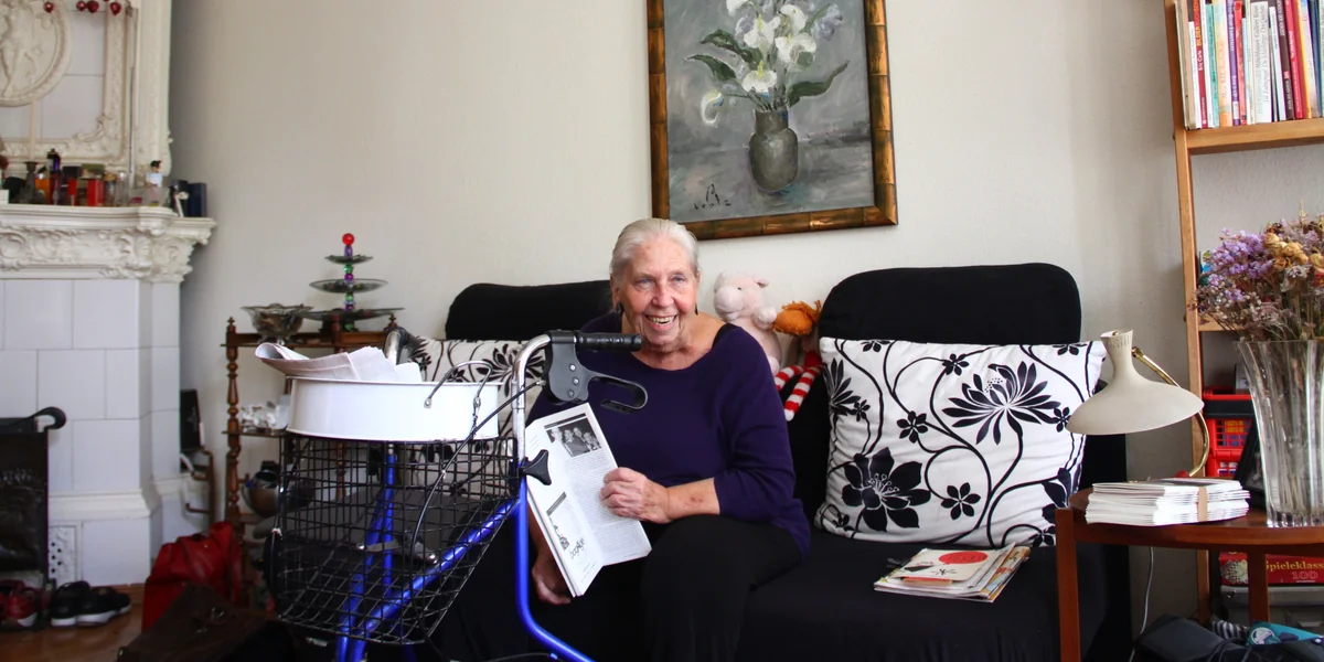 Draußen: Sie wohnt in einer Seitenstraße in Berlin-Kreuzberg. Die Straße hat im Krieg gelitten; bis heute klaffen Lücken in den Häuserzeilen. Das Haus von Elisabeth Schmidt aber wurde wieder aufgebaut. Bei der letzten Sanierung erhielt es einen pastellfarbenen Verputz. Es gibt Stuck an der Wand, einen kleinen Laden im Erdgeschoss, Giebel über den Fenstern im ersten Stock und bärtige Gesichter an den Wänden der Beletage.
