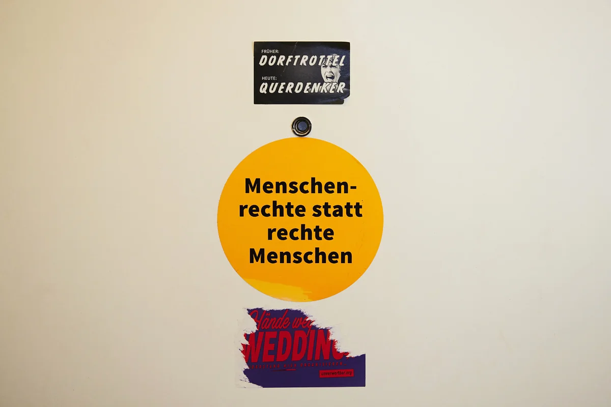 Drinnen: Hinter der Wohnungstür ist der Wohn- und Essbereich, vieles hier zeugt von Kirschkes politischem Engagement: Ein Poster vom jüngst verstorbenen Grünen-Politiker Hans-Christian Ströbele mit dem Slogan „Entwaffnet die Finanzmärkte“ hängt an der Wand. Seine Zimmertür ist übersät mit Aufklebern: FCK AfD, Gegen Nazis, Refugees Welcome, Antifa. Auf dem Couchtisch stehen eine Flasche Cola und eine Tiefkühlpizza frisch aus dem Ofen, Thunfisch. Kirschke isst oft Fertiggerichte, weil er immer auf dem Sprung ist. Auch jetzt ist sein Zeitfenster begrenzt; am Abend ist noch eine Kundgebung geplant.