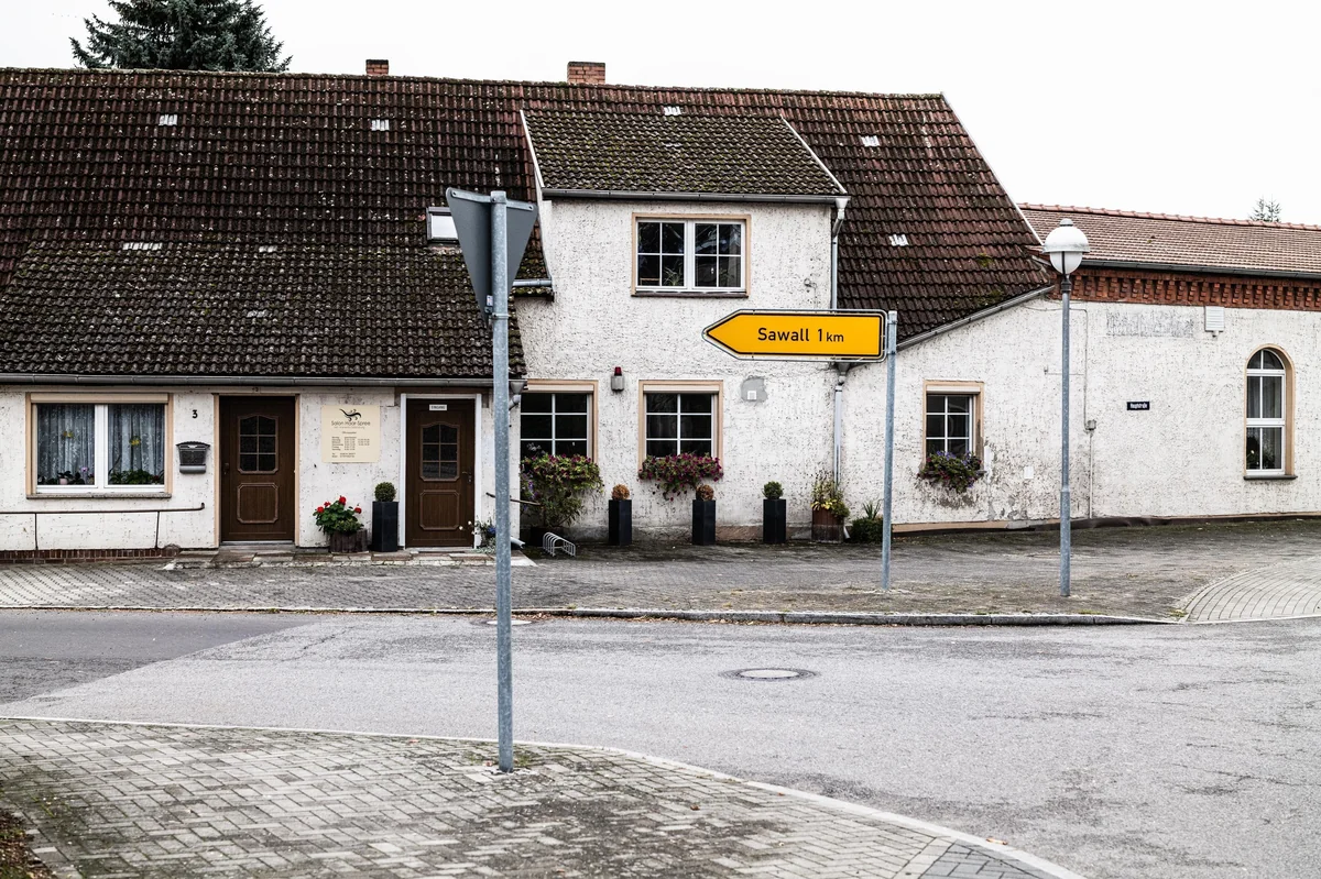 Draußen: Trebatsch in der Niederlausitz, von der Hauptstraße geht eine Sackgasse ab, davor ein Schild mit der Aufschrift „Keine Wendemöglichkeit“. In der Kurve liegt eine Gaststätte, die Vorhänge sind zugezogen. Auf der anderen Gebäudeseite: zwei Türen. Rechts geht es in den Friseursalon, links zur Großmutter. Vanessa Oldenburg betritt das Haus. Drei Generationen wohnen hier.