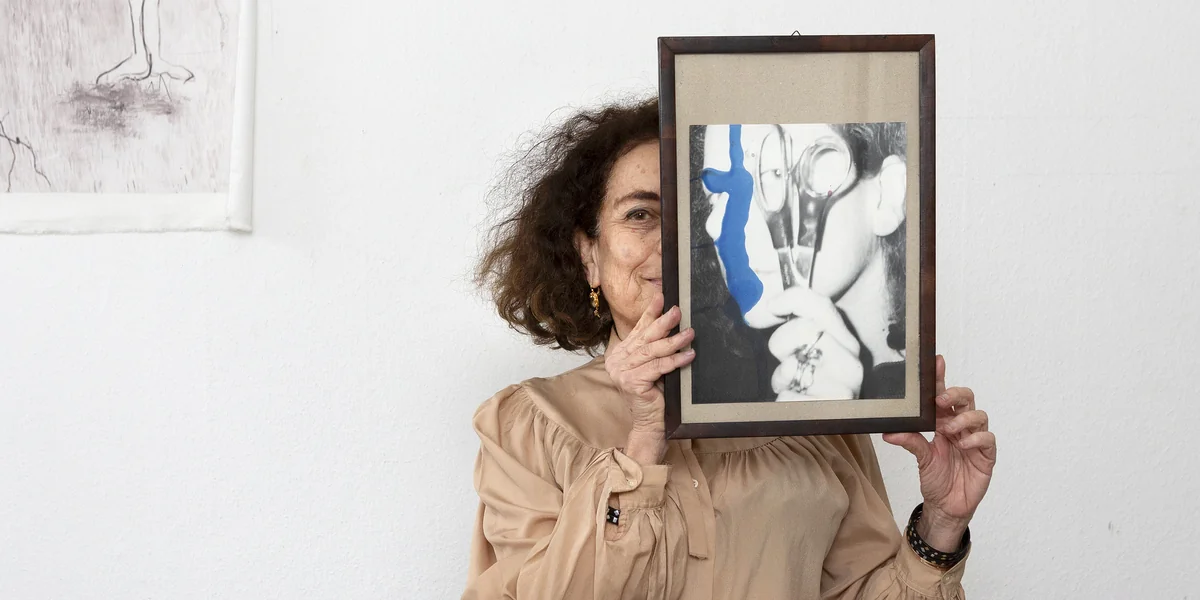 Drinnen: Varda Getzow öffnet zögerlich die Tür ihrer hellen Altbauwohnung mit Schlafzimmer, Wohnzimmer sowie einem Atelier mit Archiv und Werktisch voller Farben, Materialien und Maschinen. Die Künstlerin ist nicht sicher, ob sie in diesen Zeiten sichtbar sein möchte. Mit langsamen Handgriffen bereitet sie in der Küche einen Tee zu und erzählt, wie sie erstarrt sei, als sie wenige Tage nach dem 7. Oktober 2023 in einem kleinen Hotel in Polen an der Rezeption eine Gruppe arabisch sprechender Menschen antraf. Wie versteinert sie sich gefühlt habe, als in dem Moment eine israelische Freundin anrief.