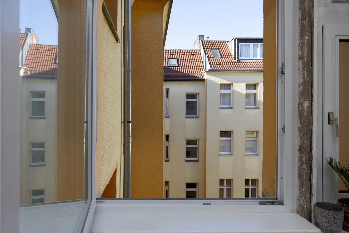 Draußen: In einer Kindertagesstätte in der Straße, wo er wohnt in Berlin, hängt eine gebastelte Sonne im Fenster. Sommerluft weht in den Blättern der Bäume. Von Weitem tönt der dumpfe Ton eines Flugzeugs.