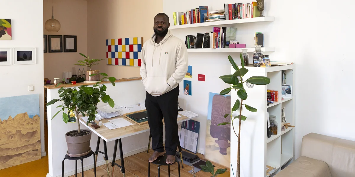 Geld: „Ich habe bei Adidas dann lange im Store gearbeitet“, sagt er. Und sich dann doch wieder fürs Studieren entschieden, in Berlin, dieses Mal „Kunstgeschichte Afrikas“. Zwischendrin habe er seine Wohnung gefunden, in der er seit elf Jahren lebt. 2014 hat er dann eine Reinigungsfirma gegründet, um sie zu finanzieren.