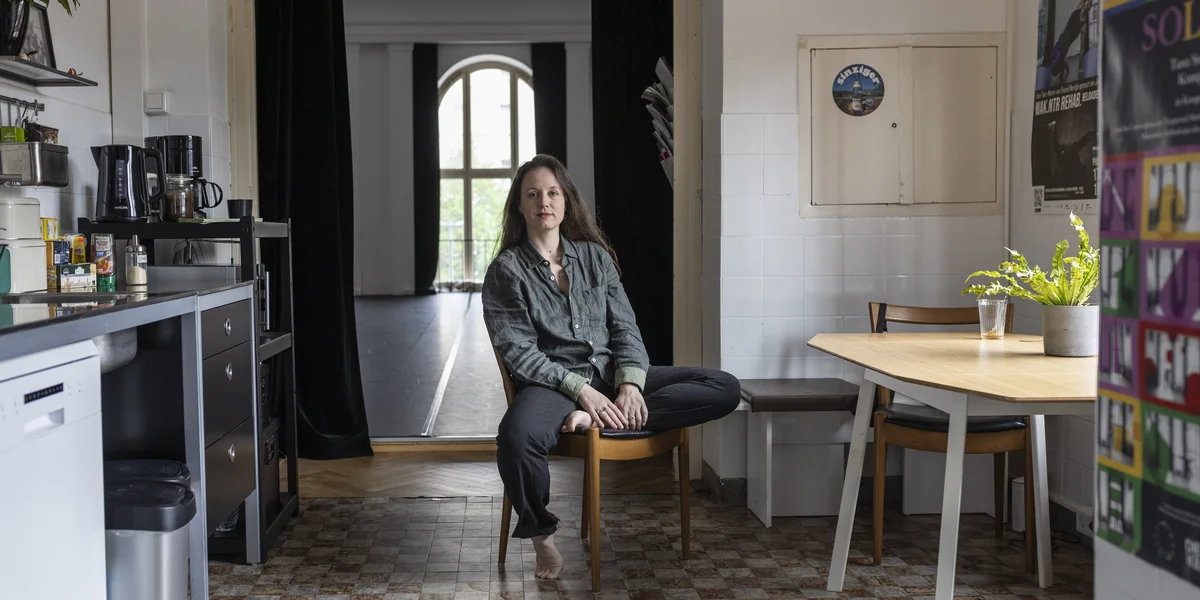Drinnen: „Willkommen in Wuppertal-Barmen“ steht auf einer gelben Wand in der Bahnhofshalle. Dort ist, wie versteckt, auch die Tür, die zum ehemaligen Bahnhofsrestaurant führt, das nach langer Renovierung 2020 zur Tanz Station wurde. Bedienungsknöpfe an einer Wand zeugen von dieser Vergangenheit. Thusnelda Mercy und ihr Partner, der Tänzer und Choreograf Pascal Merighi, mussten darum kämpfen, dass das alte Flair erhalten bleibt. Der Küchen- und Treppenboden etwa ist original. „Alle Schritte von allen Menschen, die diesen Boden betreten haben, sind noch da. Wie eine Choreografie“, sagt Mercy. Knapp 100 Quadratmeter groß ist der Raum, mit hohen Decken und bodentiefen Fenstern. Die Küche liegt über den Bahnsteigen. Die Durchsagen sind Teil der Soundkulisse; wenn die Züge kommen, muss man die Stimme heben. „Der Ort ist zwar statisch, aber erzeugt Bewegung“, sagt Mercy. Die Sonne strahlt durchs Fenster auf Blumen, Kaffeetassen und Plakate von Tanzprojekten und Performances. Die Tanz Station ist für die Familie wie ein Zuhause – auch für den vierjährigen Sohn. „Er hat schon beim Umbau mitgeholfen und war immer dabei.“