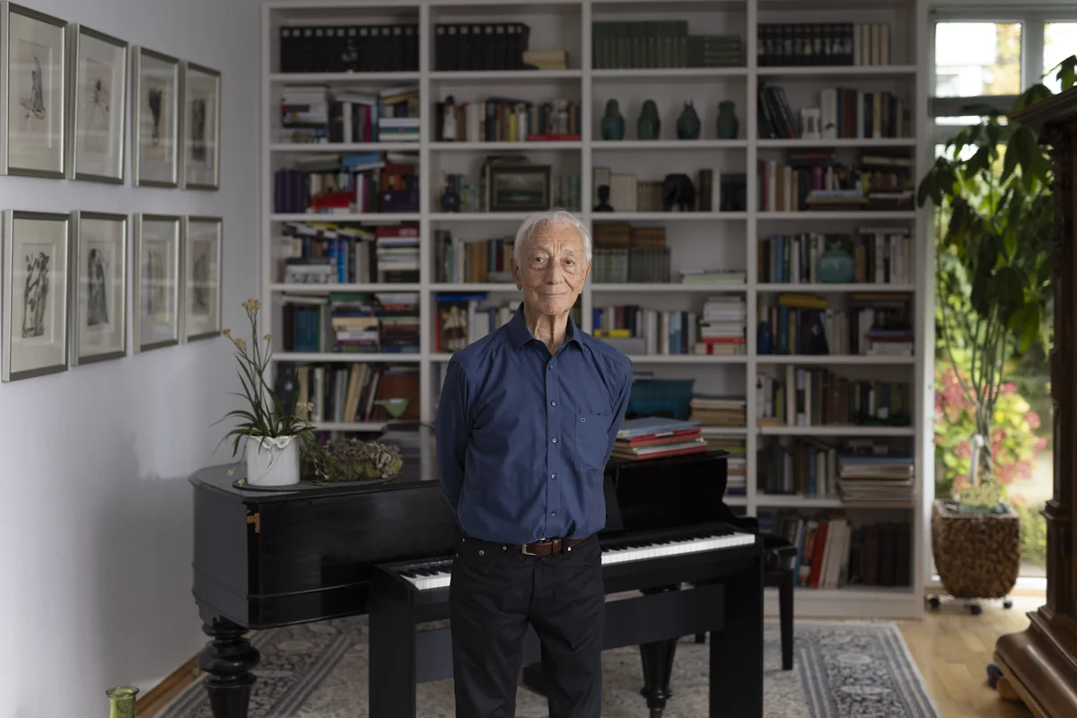 Strategien: Seine Kindheit und Jugend in der Nazizeit und im Krieg seien eigentlich normal gewesen. „Ich ging zur Schule, solange Schule war. Ich las, manchmal auch zusammen mit meinem Vater, Karl May etwa, leidlich wurde Musik gemacht. Aber die Verhältnisse waren nicht normal, mit Krieg und dann auch den Bombardierungen.“ Ob er bei Alarm an der Hand seiner Mutter in die Luftschutzkeller gerannt sei? Umgekehrt werde ein Schuh draus, er habe sie hinter sich hergezogen. Der Vater sei lieber in der Wohnung geblieben. Jedenfalls habe er sich in der Zeit auch durch eine private Leihbibliothek gelesen. „Das gibt es gar nicht mehr, private Leihbibliotheken.“ Er schließt nicht aus, dass seine Lektüre nicht jugendfrei war.