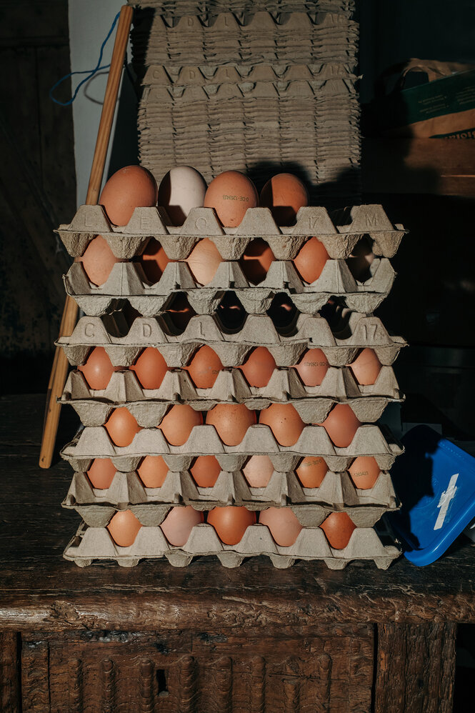 Überzeugungen: Eier sind wichtig. Das weiß man nicht erst, seit der Eierpreis in den USA ein Politikum ist. Früher hätten Hühner im Jahr etwa 20 Eier gelegt, heute 300 – auch im Biolandbau. Manche Öko-Höfe hätten über 30.000 Tiere. Brandt ist ein Verfechter der mobilen Hühnerhaltung, bei der Hühnerhäuser immer mal wieder ihren Standort wechseln. Denn freilaufende Hühner bleiben gerne in der Nähe des Hühnerhauses. Dort, wo sie rumlaufen, wächst ob ihres Gescharres und Gepickes bald nichts mehr. „Wird das Haus aber umgesetzt, ist das gut für den Boden, gut für die Insekten, gut für die Hühner, gut für den Menschen.“ Man darf sich die Hühnerhäuser, die es dabei zu transportieren gilt, gerne so groß vorstellen wie einen Zugwaggon, denn mitunter leben darin Tausende Tiere. „Mobile Hühnerhaltung gibt es im Osten nicht so“, Brandt will das ändern.