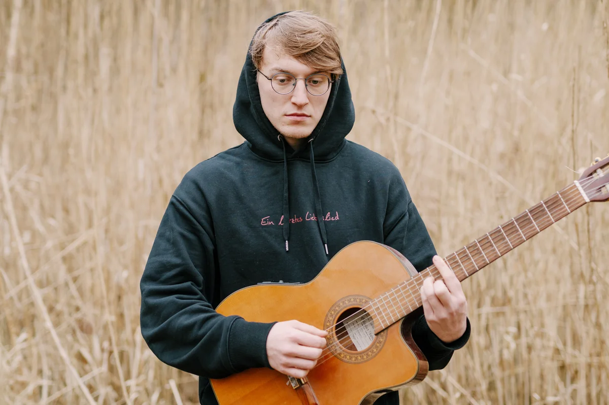 Musik machen: Grosshardt spielt akustische Gitarre und singt. Manchmal sind seine Lieder ruhig und melancholisch. Dann wieder so schnell, dass man dazu tanzen kann. Nach dem Abitur besuchte Grosshardt in Hamburg einige Wochen einen Popmusikkurs. Viel musikalische Erfahrungen hatte er vorher nicht: „Ich konnte mir damals nicht vorstellen, dass Menschen überhaupt Lust haben, mit mir zusammenzuarbeiten. Das waren bei dem Kurs doch alles krass begabte Musiker“, sagt er. „Ich dagegen konnte nicht mal richtig Noten lesen.“ Trotzdem hat es klappt.