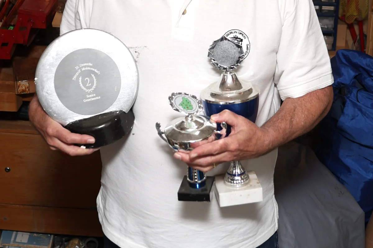 Rennsport: Mitspieler fand er über Kleinanzeigen im Stadtmagazin Tip und über Zettel, die er vor Sportläden aufhing, die Frisbeescheiben verkauften. Die erste Vereins-Disc war weiß, auf ihr abgebildet ein Loch in einer Mauer, durch das eine Frisbeescheibe fliegt. Defty hat sie noch immer. Auch den Verein gibt es noch. Gerade ist er zum zweiten Mal Deutscher Meister. Defty selbst war da schon nicht mehr dabei. „Ultimate Frisbee ist ein robuster Rennsport. Nichts für alte Männer.“ Aber er ist stolz auf die Vereinssiege wie ein Kind, das zum ersten Mal etwas gewonnen hat.