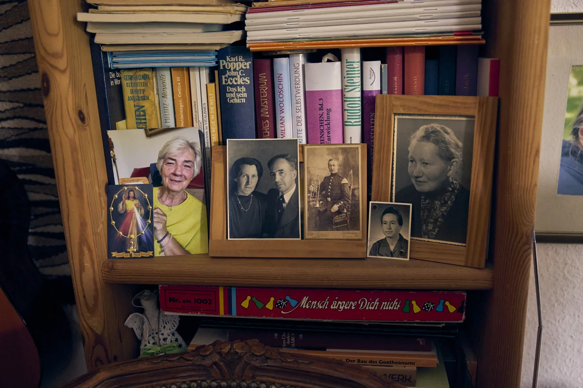 Drinnen: Einst hatte Annemarie Gerson eine Wohnung mit Arztpraxis auf 240 Quadratmetern, am Bahnhof im Stadtteil Elberfeld. Nachdem der Eigentümer sie herausklagt hatte – das Haus sollte in Eigentumswohnungen umgewandelt werden –, ging sie nach 44 Jahren, in denen sie als Ärztin gearbeitet hatte, in Rente und zog in eine Wohnung, die nur noch ein Drittel so groß war. Die Wohnung im Seniorenwohnheim, es ist ihre letzte Station, hat nur noch 42 Quadratmeter. Deshalb drängen sich die Möbel, die den Touch des letzten Jahrhunderts haben, stapeln sich die Erinnerungstücke. Sofa, Sessel, Regale. Handpuppen, Bücher, Engelsfiguren. Auf dem Klavier hat Gerson Fotos ihrer großen Familie aufgestellt. In einer anderen Ecke gezeichnete Porträts ihrer Eltern, ihrer älteren Schwester und ihrer Zwillingsschwester. Um diese kreisen ihre Gedanken.