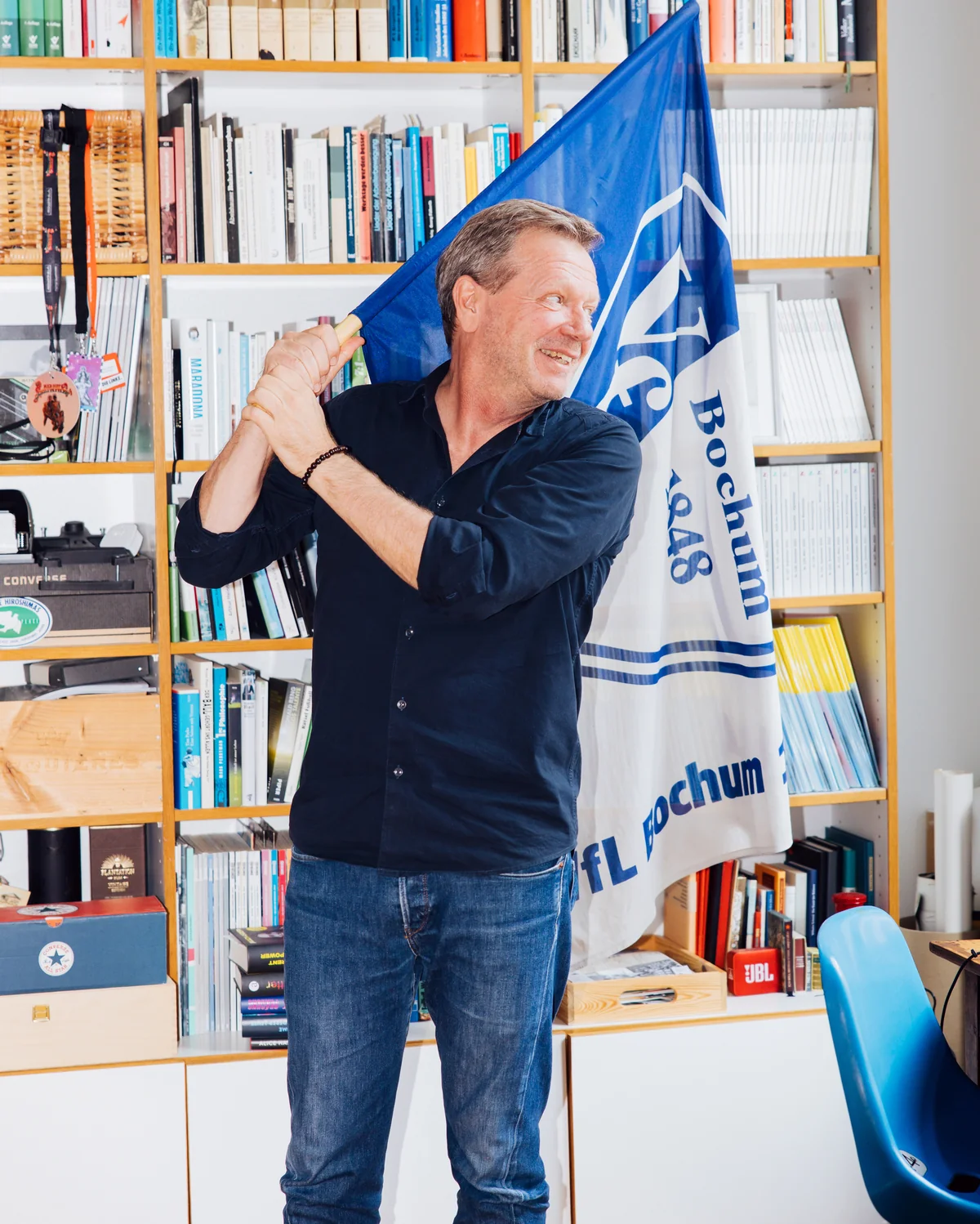 Rolling Stone: Als er mit den Jobs bei der Gewerkschaft anfing, war er noch in seiner wilden Phase. Er sei ein Rumtreiber gewesen, sei ewig umgezogen. Dass er jetzt schon elf Jahre in der gleichen Wohnung lebt, sei die Ausnahme. Gerade hört er den Podcast „100 Songs“, mit dabei „Papa Was a Rolling Stone“ von den Temptations. „Wherever he laid his hat was his home“ – „wo er seinen Hut hingelegt hat, ist er zu Hause“, heißt es da. Das bringe seine Umtriebigkeit auf den Punkt. Wie da noch zwei Ehen und zwei Kinder reinpassten, weiß er auch nicht genau. Nach der ersten Scheidung macht er den Motorradführerschein und fährt mit dem Motorrad durch Patagonien. Nach der zweiten lernt er Fallschirmspringen. Mit seiner dritten Frau ist er verpartnert. Wie er und seine Söhne hat auch sie eine Dauerkarte für den VfL Bochum. Ostkurve P links. Er hat alle angefixt.