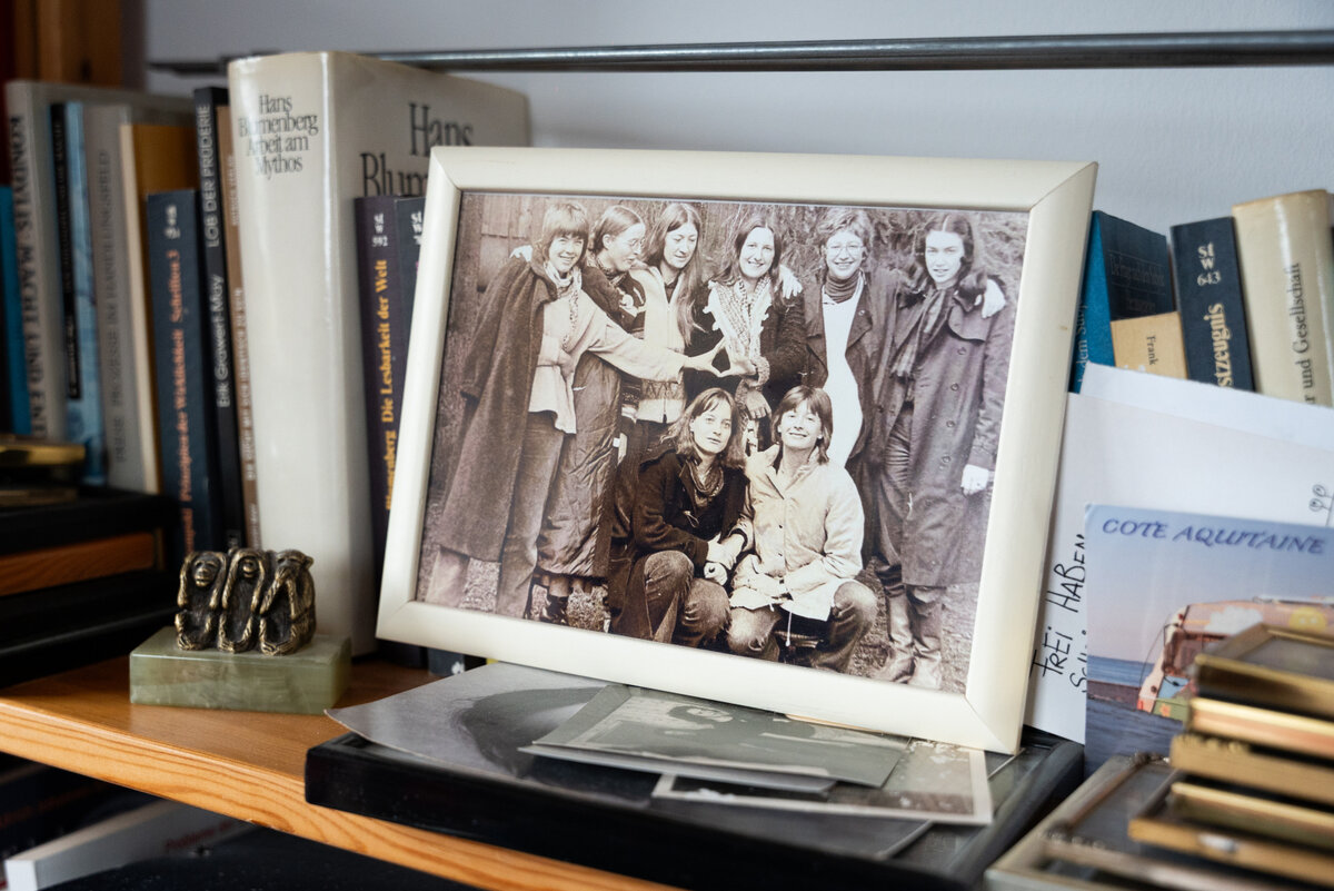 Drinnen: Da gibt es ebenfalls viele Pflanzen, außerdem stapelt sich in ihrem Arbeitszimmer Papier: Briefe, Akten, Bücher über Emotionen. Im Regal steht ein Foto von ihr inmitten einer Gruppe von Frauen. Der Austausch mit anderen Frauen ist und war Landweer immer wichtig. Es ging darum, sich zu unterstützen „in der Freude an der eigenen Intellektualität“.