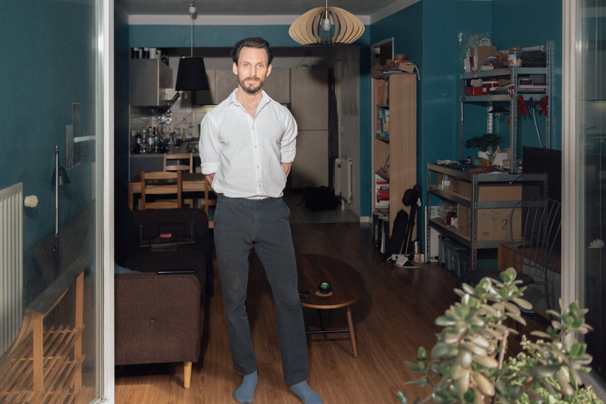 Drinnen: Gerne allein, das ist Gero Fallisch auch. Dann sitzt er am liebsten auf dem Balkon, der auf die ruhige Seitenstraße geht. Auf dem Balkontisch stehen ein Aschenbecher und ein Windrad, das die Tauben vertreibt, die versuchen, in seinen Pflanzen zu nisten. Im Wohnzimmer erinnert das dunkle Türkis der Wände an die Farbe einer Seife, die Fallisch herstellt, eine, die nach Rosmarin, Veilchen und Tabak riecht und den Namen „Berlin 63“ trägt. Die „63“ soll an die Rede John F. Kennedys erinnern, als er Berlin besuchte und seinen berühmten Satz „Ich bin ein Berliner“ sagte. Oben auf dem Küchenschrank stehen die Utensilien fürs Seifensieden: Töpfe, kleine Kanister und Gläser. Daneben eine Reihe halb leerer Alkoholflaschen: Rum, Gin, Aperol.