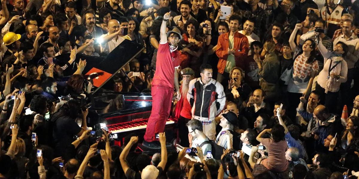 An dem Samstag, an dem die Polizei Taksimplatz und Gezipark räumt, kommt er zu spät und wird empfangen von einer Wolke Reizgas. „Ich habe alles stehen gelassen, bin weggelaufen, und als ich eine halbe Stunde später wiederkam, hatten sie meinen Flügel und mein Auto beschlagnahmt.“ Über Facebook bittet er um Hilfe, Journalisten begleiten ihn. Ein paar Tage später bekommt er alles zurück. Nach einem weiteren Auftritt im Abbasagapark, wo er als Held gefeiert wird, reist er ab.