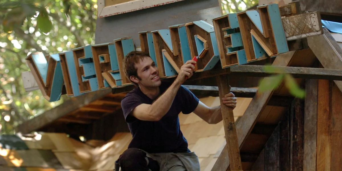 Inzwischen bastelt Thorsten Passfeld lieber liebevolle kleine Holzbilder. Er findet: „Der Arbeitsbegriff draußen hat sich geändert.“ Auch gebe es nicht mehr so viel Alt- und Abbruchholz, das Wiederverwenden habe sich durchgesetzt. Und außerdem wolle er nicht „wichtig und richtig und zeitgeistig“ sein, sondern lieber „in einem geschlossenen Raum sitzen und in Ruhe was machen“, sagt Passfeld. „Ich kann auch so auf den Punkt kommen, ohne zig Kubikmeter Holz zu bewegen, damit ein paar Leute ein Bier darin trinken … Aber es war eine schöne Phase, man hat viele Leute kennengelernt.“