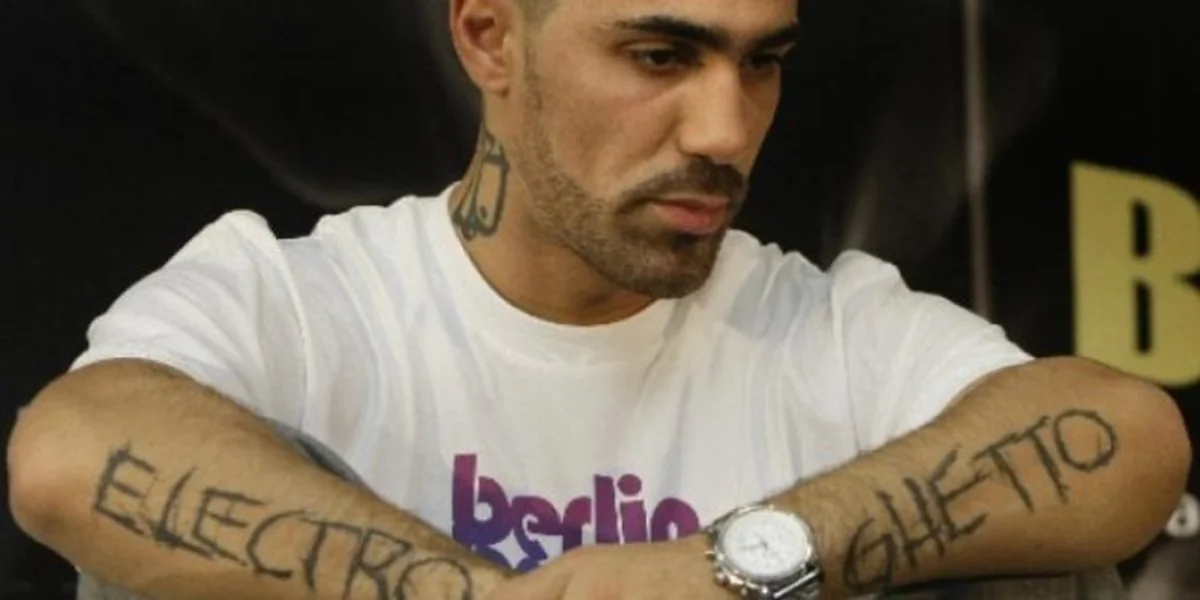 Im nächsten Raum noch einmal. Eine Leinwand. Er beim Konzert. Die Hand in der Luft. Sehr lässig. Ikonenhaft. Ein Tick Freiheitsstatue. Er schlendert davor vorbei, an T-Shirts, Boxer-Shorts, an den Socken. Manches liegt auf Blattgoldboxen. Hinten in der Ecke sind auch Hemden, richtig kragensteife Herrenhemden. Und Jogginghosen. Und vorne sind Caps. Und überall er. Er. Er. Er. Auch auf den Poloshirts. Seine Silhouette. Oder sein Name. Der Name seines Vaters. Ferchichi. Ein schlichter Schriftzug.
