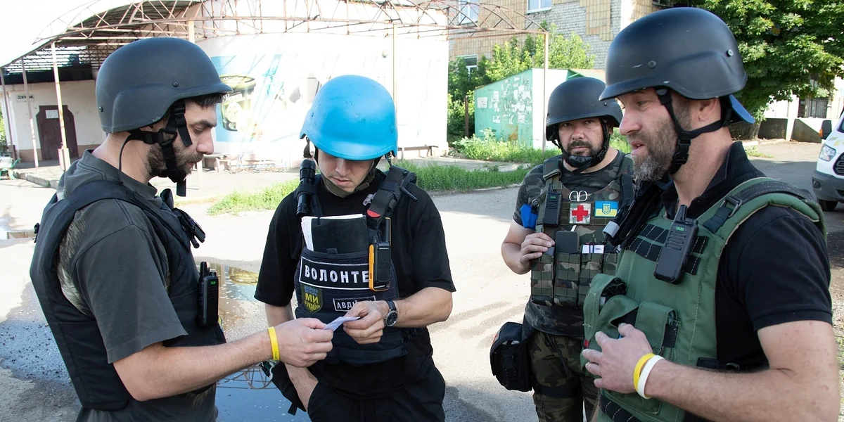 Die Ankunft in Awdijiwka erinnert an eine Szene aus einem Horrorfilm. Die Straßen sind an diesem Tag Ende Juni fast menschenleer, jedes zweite Gebäude ist beschädigt. Zunächst will sich Oleksij mit drei anderen Freiwilligen treffen, die einen kleinen Bus haben, um Menschen zu transportieren. Am Vortag hat er eine Liste mit den Namen und Adressen von Personen zusammengestellt, die ihn um eine Evakuierung gebeten haben. Heute sind es sieben Anschriften in verschiedenen Teilen der Stadt. Die Freiwilligen teilen sie untereinander auf, um die Evakuierung so schnell wie möglich über die Bühne zu bringen.