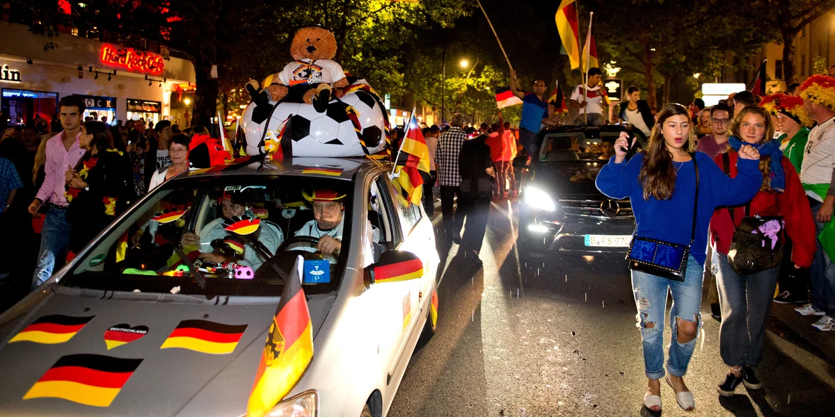 Aber so ein Weltmeistertitel kann auch ganz schön nerven. Auf deutschen Großstadtstraßen war in den Stunden nach dem Spiel kein Durchkommen mehr. Kilometerweit stauten sich schlandfarben bewimpelte Autos, jubelnde Fans funktionierten die Fahrbahn zur Feierzone um. Zwei Tage später das Gleiche in Berlin noch einmal: Bei der Ankunft der DFB-Elf in der Hauptstadt liegt der Verkehr lahm, alle wollen den Mannschaftsbus bejubeln. Aber was gibt es da wirklich zu sehen?