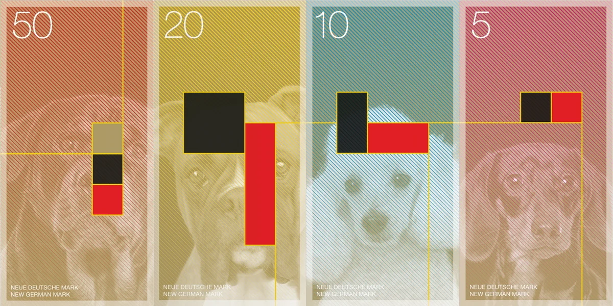 Das „Neue Geld“ zeigt Eigenheiten, Traditionen und Wahrzeichen der einzelnen Länder. Nicht alles ist ganz ernst gemeint. Auf den belgischen Geldscheinen sind Waffeln, Fritten und Schokolade abgebildet. Die Neue D-Mark zeigt Kühlergrills deutscher Autobauer. Auf den Rückseiten der Neuen Deutschen Mark sind die in Deutschland beliebtesten Hunderassen zu sehen.