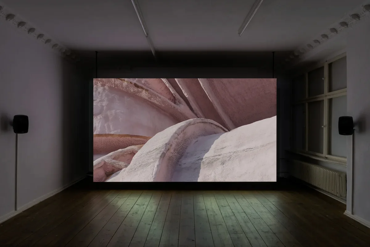 Räder kurben Sauerstoff durch die Nasenflügel, Kübel wie in einem Stahlwerk transportieren ihn durch eine schmiedeeiserne Luftröhre: Der menschliche Organismus ist eine effiziente, autarke Fabrikanlage auf Fritz Kahns berühmter Infografik „Der Mensch als Industriepalast“ von 1926. Eine psychoanalytische Wendung von Kahns Vision tönt aus der wandfüllenden Videoprojektion der britischen Künstlerin Lucy Beech Im Residency Space von Between Bridges: „Das Gefühl (zumindest für einen Moment)// dass mein Körper nur mich selbst enthält“ hört man dort auf Englisch.