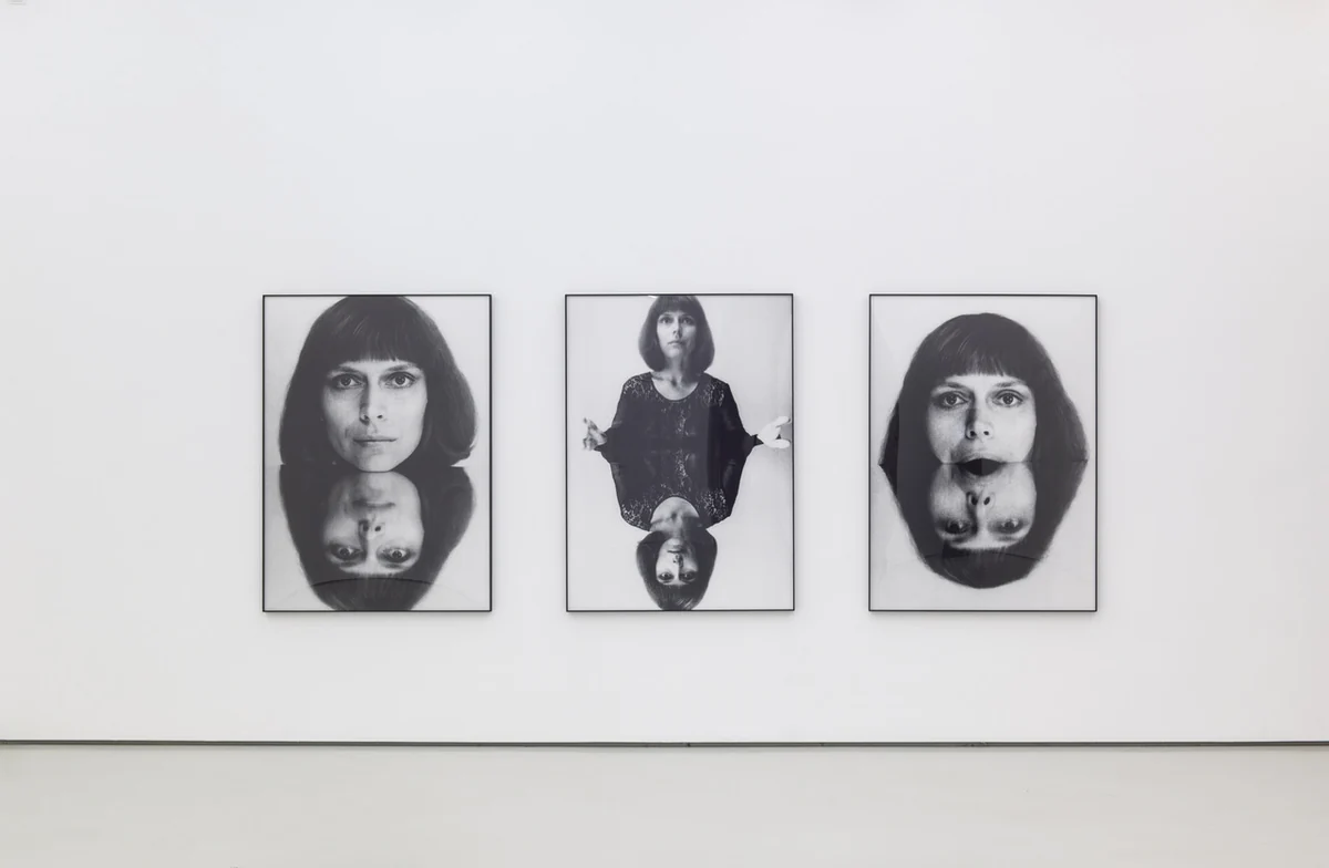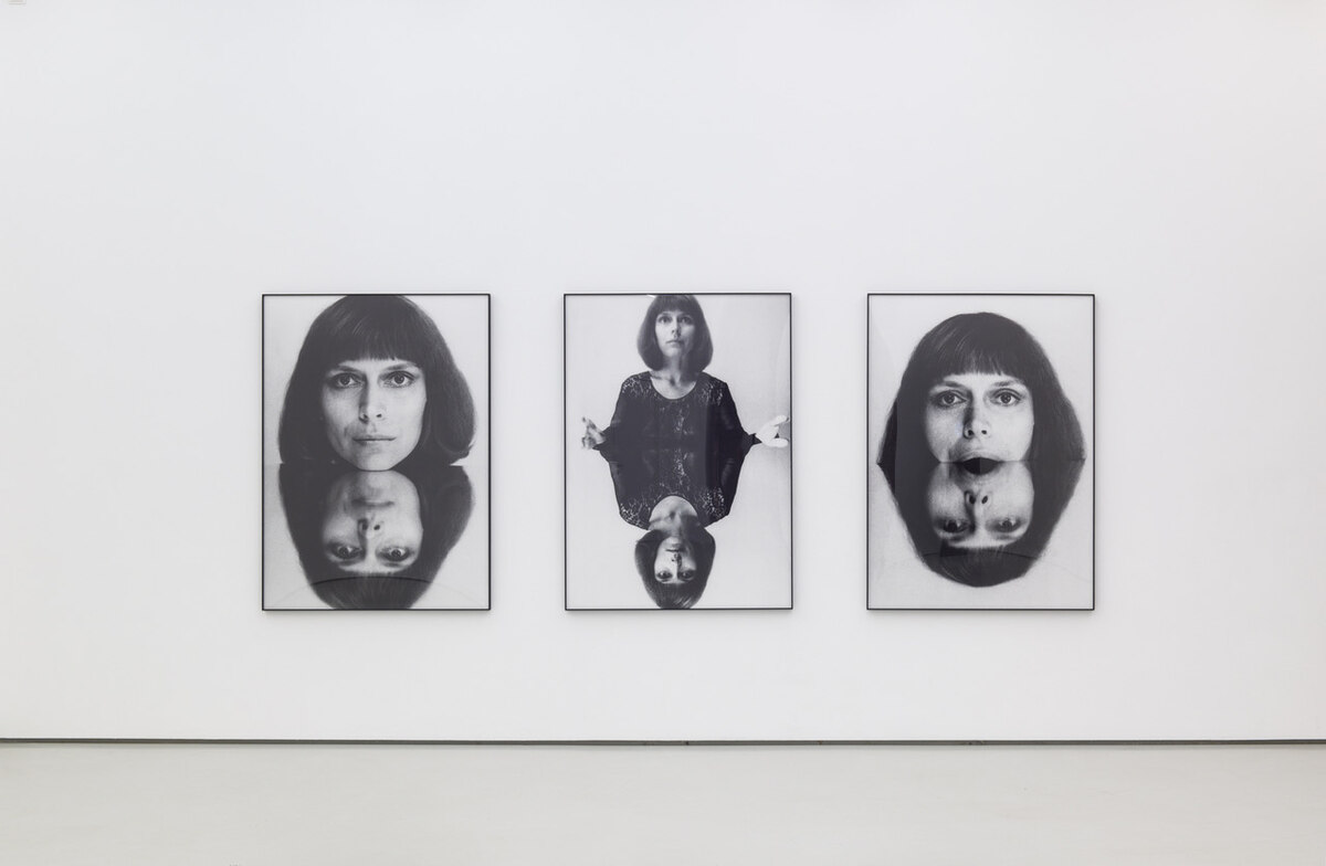 In „Poemim“, der Fotoserie der titelgebenden Arbeit, quetscht sie ihr Gesicht in Grimassen mit einer Glasscheibe platt, verzerrt es radikal. Für das Triptychon „Androgin“ spiegelte sie sich, ihren Kopf, ihren Rumpf zu androgynen Kugelwesen. Oder sind es doch Os? Denen widmete sie im Jahr 1972 die Videoarbeit „O-Pus“, nach der auch die erwähnte Retrospektive benannt ist: Acht Minuten für den Buchstabe O visuell wie auditiv – kurz oder lang, sanft oder hart, laut oder leise, fragend oder fordernd – breitet sie dort aus. Fest hakt sich das in Augen und Ohr.