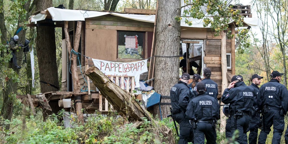 Denn das, was da im Wald lag, stammt zwar von den Besetzern, die verhindern wollten, dass der Wald abgeholzt wird, aber dass daraus Müll wurde, dafür hat die Polizei gesorgt: indem sie das Baumhaus mit allem, was darin war, abriss und auf einen Haufen schmiss.