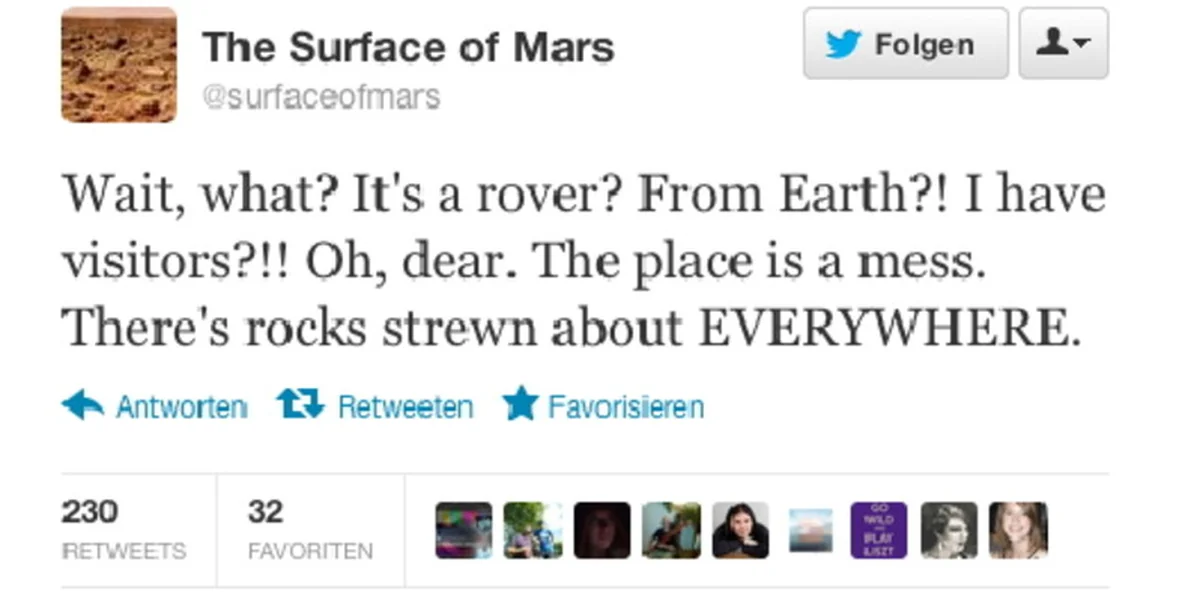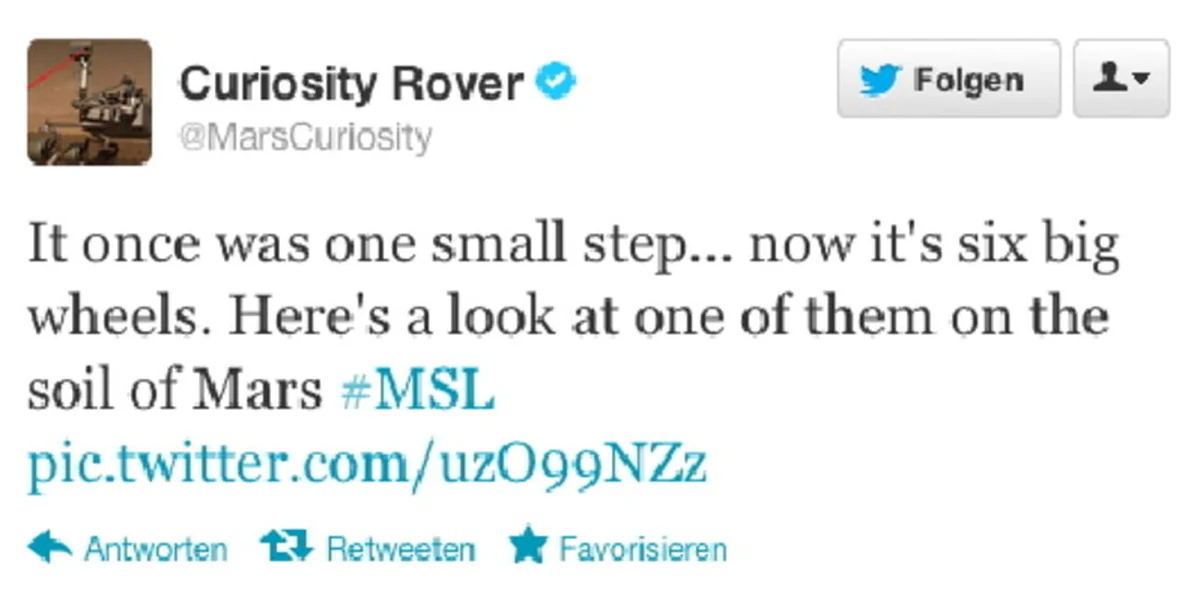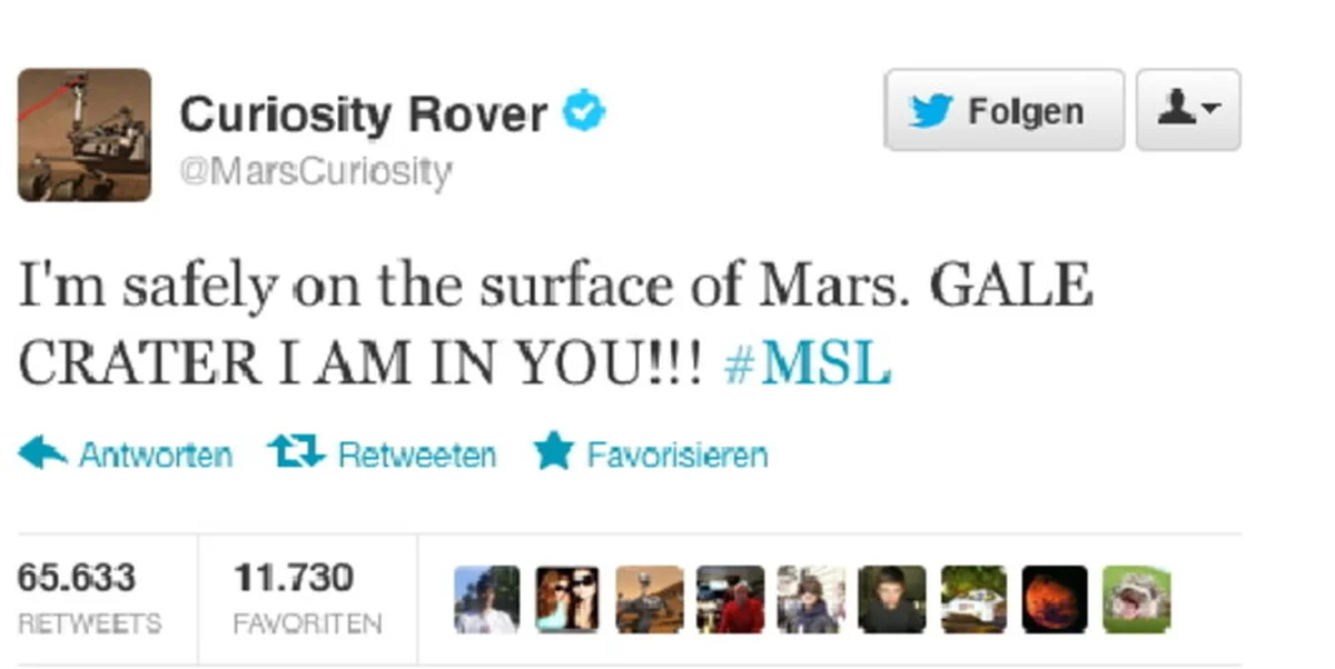 Nicht nur bei der NASA freute man sich über die Landung auf dem Mars. Auch beim Kurznachrichtendienst Twitter gab es rege Kommunikation. Mittendrin: Der der Roboter „Curiosity“ selber. Er schreibt aus der Sicht der Sonde. Die Geschichte einer Marslandung auf Twitter.