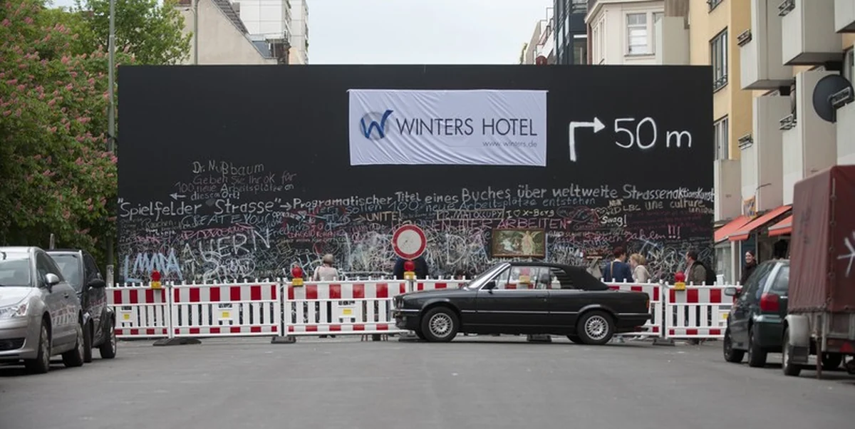 Die in Skopje geborene und in London lebende Prlja wollte mit der quer über die Straße gezogenen Barrikade den Kontrast zwischen der schicken nördlichen Friedrichstraße und deren Südende verdeutlichen – dem Teil, der zu Kreuzberg gehört und wirtschaftlich viel schwächer dasteht.