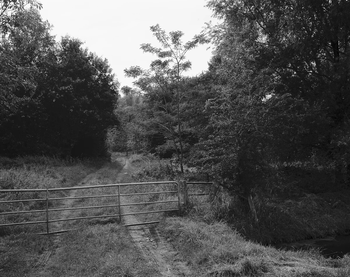 Heute ist da eine friedliche Streuobstwiese, aber auch der Kellereingang, über dem auf dem Tatortfoto die Markierung ist, wo die Streichhölzer gefunden worden sein sollen. Das fand ich so interessant: dass man sich an der Stelle bewegt, wo diese Streichhölzer, die mir da im Archiv aus dem Umschlag entgegen gefallen sind, angeblich damals gefunden wurden und mit denen damals angeblich das Feuer angezündet wurde, wofür dieser junge Mann gestorben ist. Es ging mir darum, das Unwohlsein auszudrücken, das sich bei mir eingestellt hat, und das hat sich für mich gerade aus der Kombination ergeben, aus der Landschaft, die zum Teil atemberaubend schön war und zum Teil dunkel und verwachsen, aus den privaten Fotografien und den Akten.