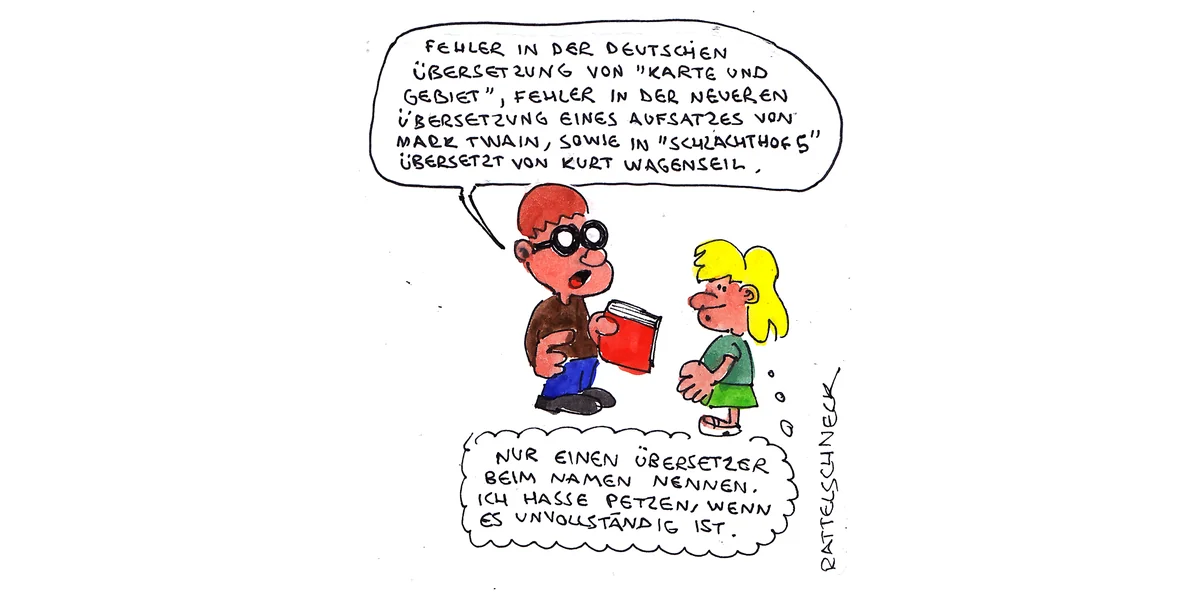 „Sprösse steinreicher Eltern“, ein ranghoher Militär, „der vor Empörung sichtlich nach Luft schlappen“ muss, eine Buchhändlerin, die sich „für die Unanämlicheiten“ bei einer Bestellung entschuldigt – das sind Formulierungen, auf die man in der deutschen Übersetzung von Michel Houellebecqs Roman „Karte und Gebiet“, in der taz und in einer gewöhnlichen Geschäfts-E-Mail stößt und die in jenes „Kuriosenkabinett“ gehören, das in einer neueren Übersetzung von Mark Twains Aufsatz über die angeblich „schreckliche deutsche Sprache“ zu entdecken war.