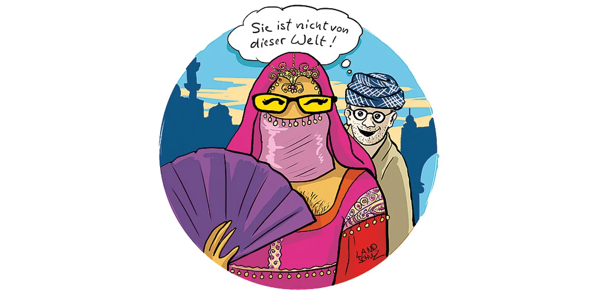 In der 1.000 und ersten Nacht aber forderte der Todenhöfer Scheherezade auf, ihren Schleier endlich fallen zu lassen, denn er war trotz allem ein Mann des Abendlandes und duldete nicht, dass die Weiber allzu geheimnisvoll taten.