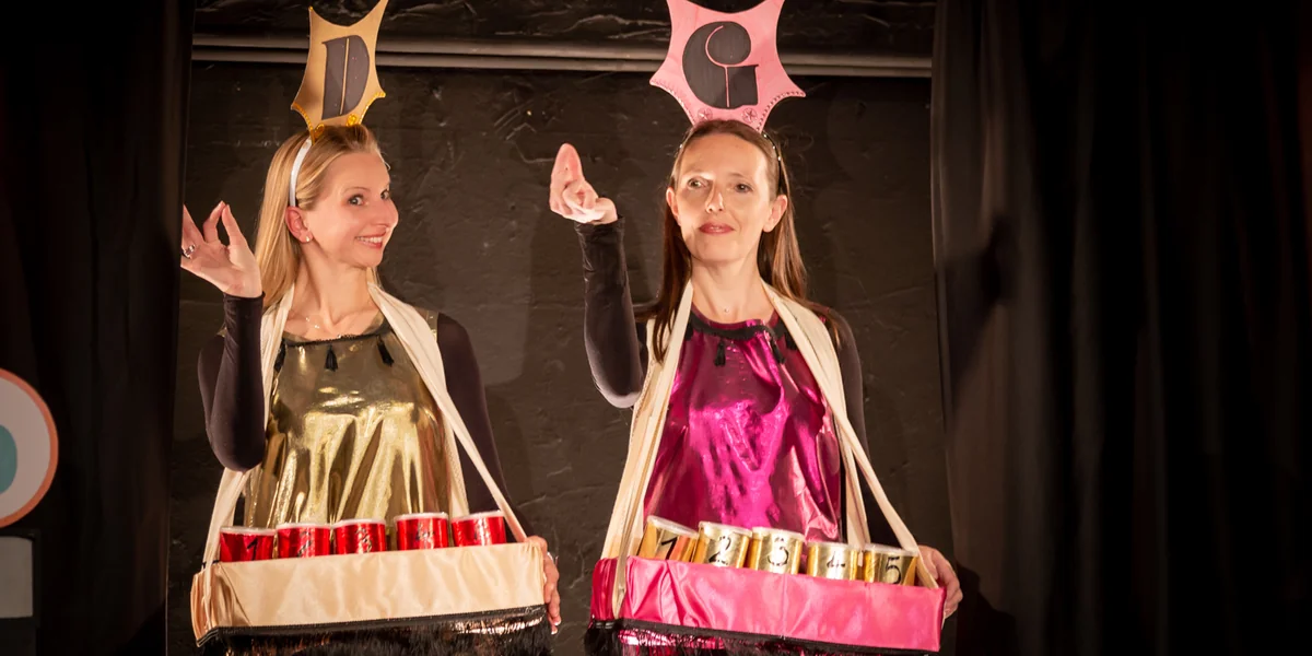 Jetzt betraten zwei zauberhafte Elfenwesen namens Frau Ding und Frau Gang die Szenerie: Flügel wie aus Seide gesponnen, Gesichter aus reinstem Alabaster, liebreizend und schön verteilten sie Murmeln im Publikum, denn dem Jurypreis des besten Dichters dieses Wettstreites musste auch ein Publikumspreis entgegengestellt werden. Und gewählt wurde per Murmel-Abgabe!