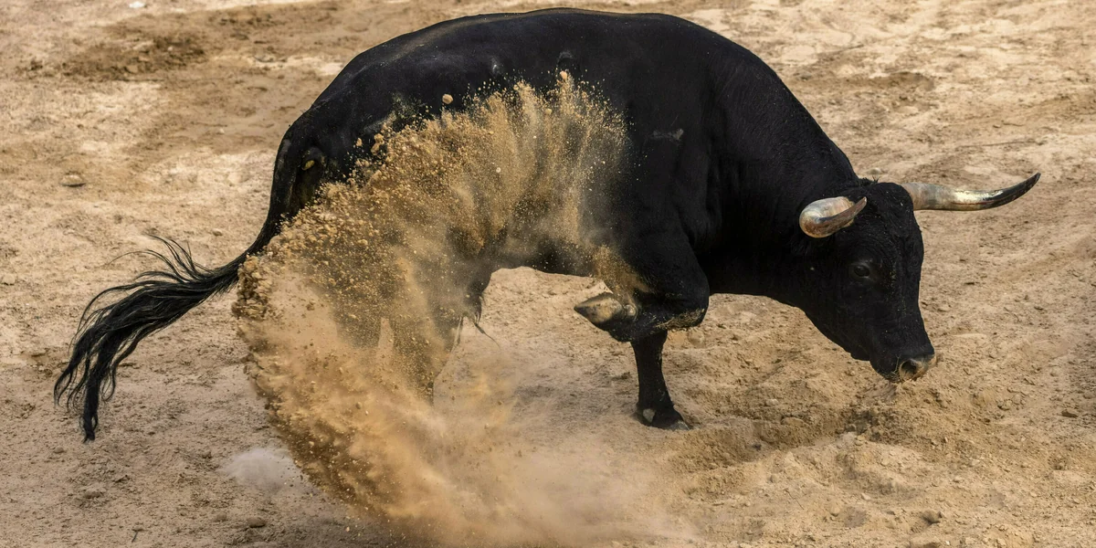 Beim Versuch aufzustehen, wird der Münchner vom herangestürmten Bullen Carlos mit einem wuchtigen Kopfstoß durch den knackend brechenden Holzzaun auf die angrenzende Rasenfläche befördert, wo er nach dem Ausrollen in etwa hundert Metern Entfernung stöhnend liegenbleibt.