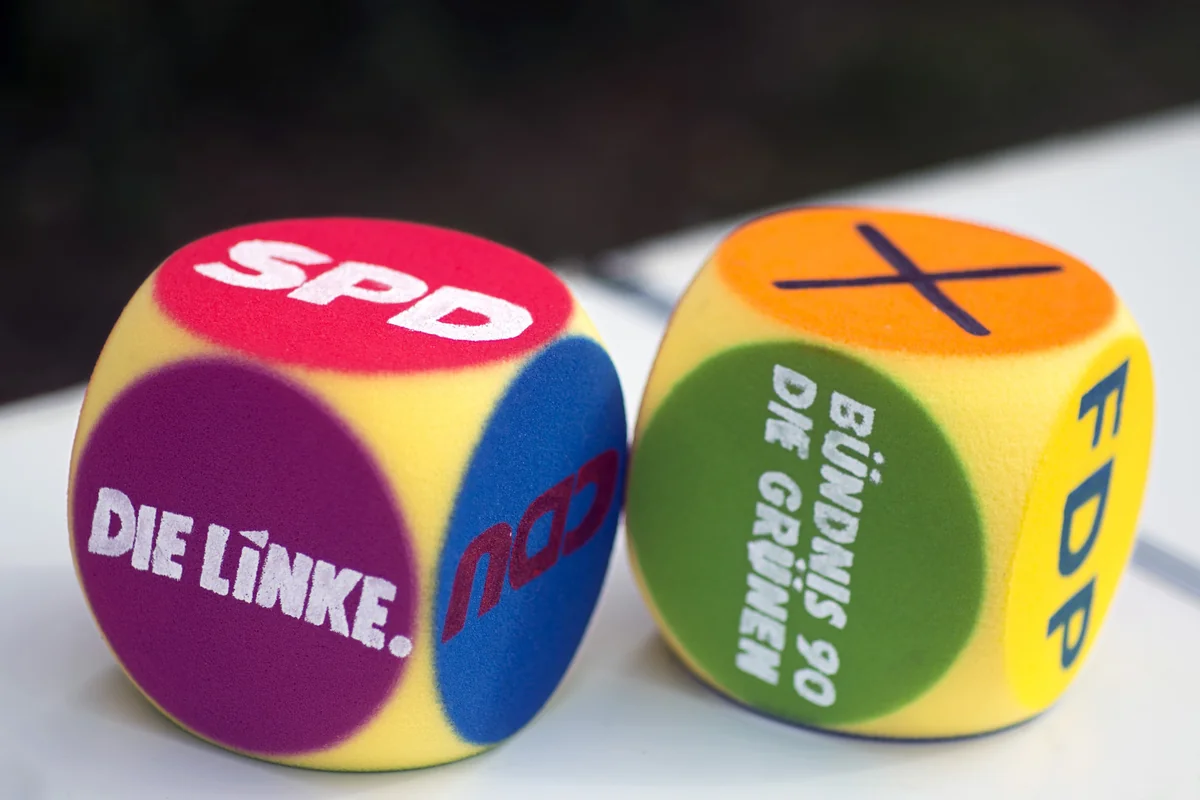 In der Heftmitte, schön mit Fadenbindung, wartet die gute alte Stecktabelle. Die Wappen von CDU/CSU, SPD und all den anderen zum Heraustrennen und wegstecken! Neu dabei: das Brombeerblatt des BSW und das schrullige Büroklammerstromstecker-Abzeichen der WerteUnion. Jetzt schnell beide herauslösen und auf die Abstiegsplätze stecken, gleich neben der blau-gelben FDP!