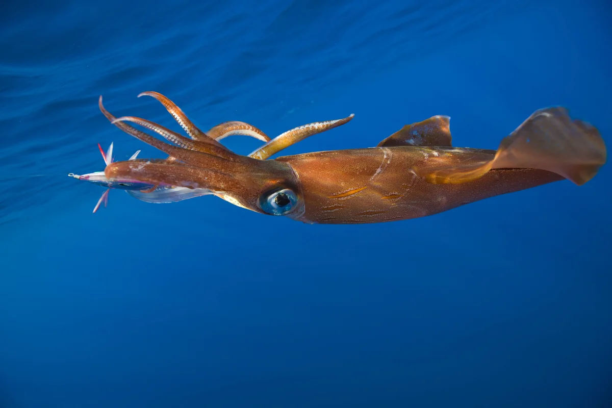 Während die Kraken nur zwei bis drei Jahre alt werden, können Riesenkalmare bis zu fünf Jahre leben. Weil sie sich vornehmlich in einer Tiefe zwischen 300 und 1.000 Metern aufhalten, wo nur noch wenig Licht hinkommt, haben sie sehr große Augen; „groß wie die Radkappen eines Lastwagens“, schreibt Fabio Genovesi in seiner „Botschaft der Riesenkalmare“ (2022). Ihr Blut ist blau, weil es statt Eisen Kupfer enthält.
