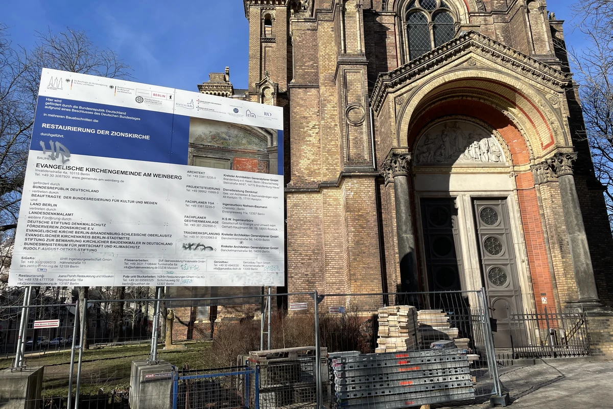 Die Zionskirche ist unter der Woche geschlossen. Restaurierungsarbeiten laufen. Leise Baugeräusche dringen aus dem Innern nach draußen. Ein Rundgang.