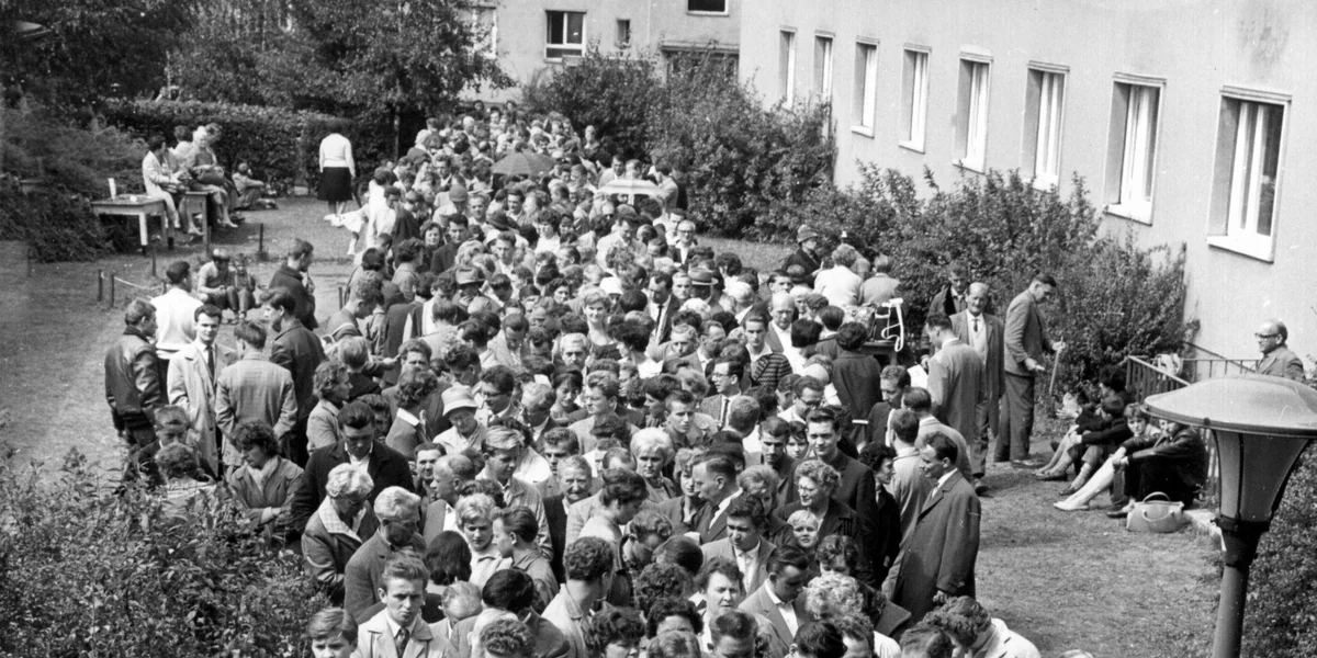 In unseren ersten Tagen in Westberlin kamen wir bei dem Onkel unter. Wir verkauften unseren Fiat Polski für 1.000 Mark. Dann zogen wir um, ins Lager. Eine große Halle in Berlin-Neukölln, eigentlich gedacht für Obdachlose, aber, weil in diesen Jahren so viele von uns kamen, wurde sie auch für Aussiedler geöffnet. Überall Eisenbetten und Plastiktüten, es roch nach Schnaps, und meine Schwester und ich krallten uns an den Beinen unserer Mutter fest.