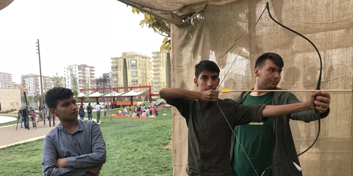 Lise öğrencisi Serhat Korkmaz, ok atmak için yayı eline alıp geriyor. Sol gözünü kısıyor, hedefe yoğunlaşıyor: Tam isabet. Atışını tamamladıktan sonra parkasını giyip çadırdan dışarı çıkıyor. 16 yaşındaki Korkmaz, Diyarbakır'da bir gençlik festivali gerçekleşeceğini duyduktan sonra kent merkezine yaklaşık 100 km uzaklıkta yaşadığı Hani ilçesinden buraya tek başına gelmiş.